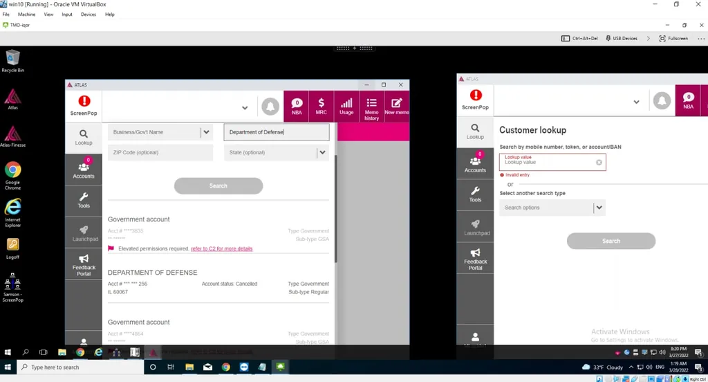 LAPSUS$のチャットとスクリーンショットには、彼らが3月19日にT-MobileのAtlas顧客管理システムにハッキングし、「FBIと国防総省に関連するアカウント」を検索したことが示されています。しかし、LAPSUS$にはその情報にアクセスするための追加の認証情報がなかったことが判明しました。